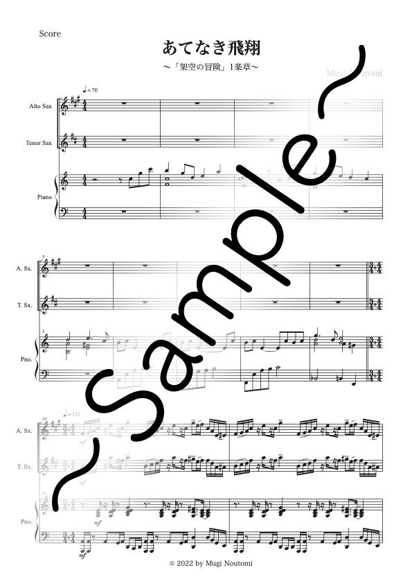 オリジナル曲「架空の冒険」の1楽章の楽譜pdfです。